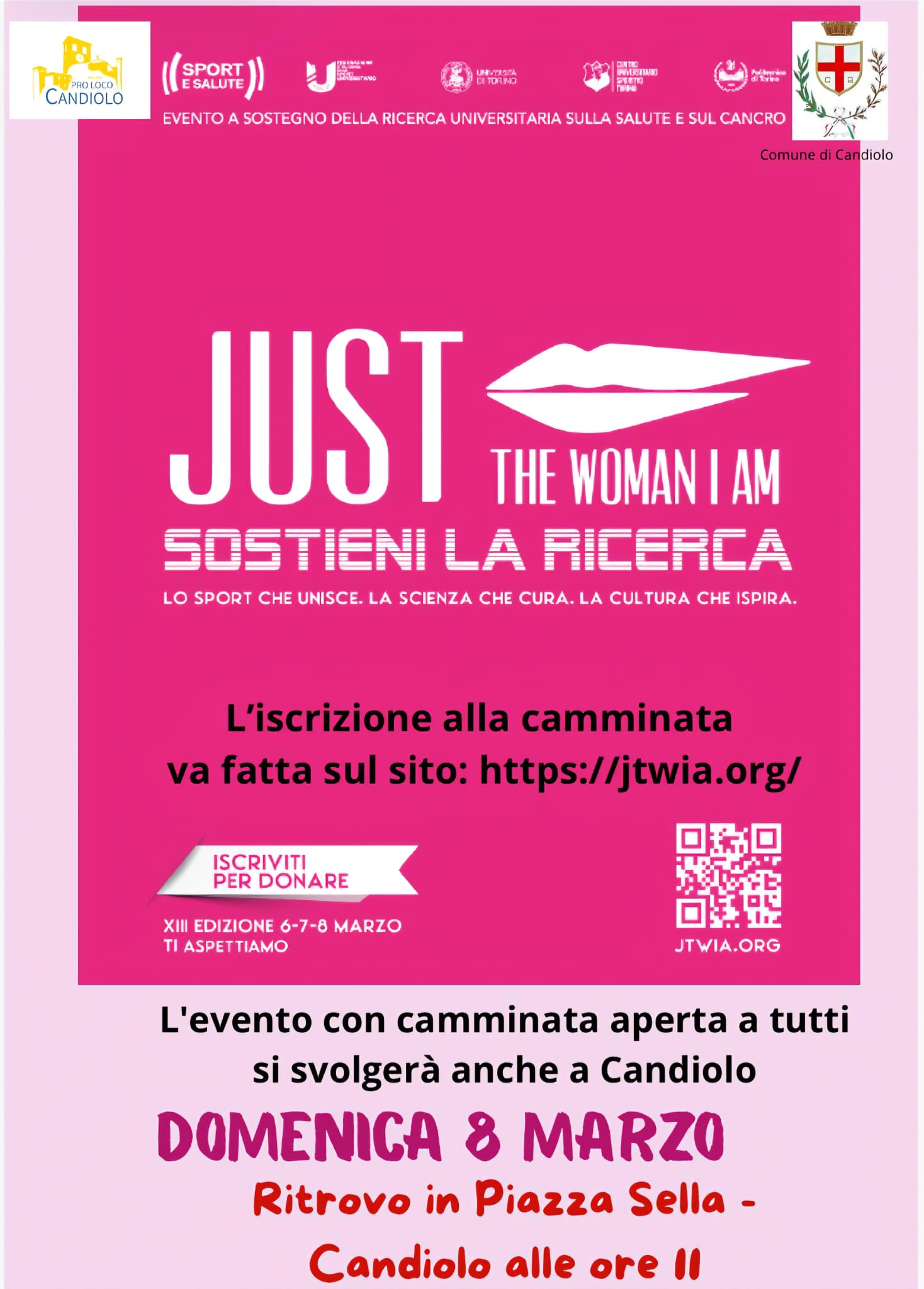 - Domenica 8 marzo dalle ore 11 Camminata per JUST THE WOMAN I AM iscrizione prima della camminata sul sito: JTWIA.ORG
